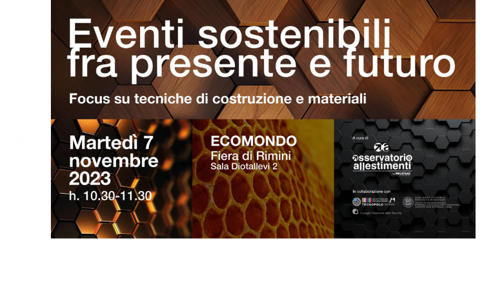 L‘Osservatorio Allestimenti, il primo dedicato all’architettura temporanea per l’economia sostenibile declinata sugli spazi business, in collaborazione con il Tecnopolo di Rimini e il CIRI FRAME (Centro Interdipartimentale di Ricerca Industriale Fonti Rinnovabili, Ambiente, Mare ed Energia) presenta il workshop centrato sulla sostenibilità degli eventi con focus sui materiali.