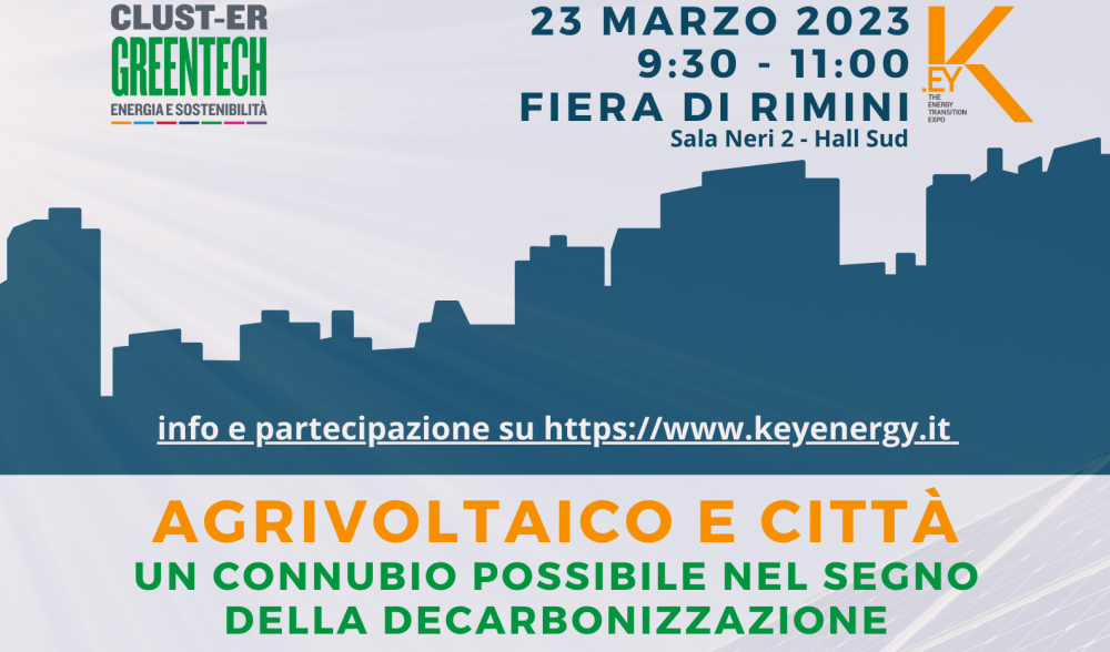 INFO E PARTECIPAZIONE: https://www.keyenergy.it/eventi/k.ey-2023/programma-convegni-2023/e23385391/agrivoltaico-e-citta-un-connubio-possibile-nel-segno-della-decarbonizzazione.html